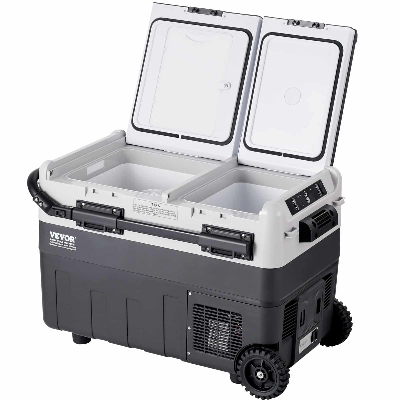 Dvigubas naudojimas namuose ir automobilyje: Šaldytuvas yra su tvirtais ratukais ir teleskopine rankena, kad būtų lengva ir stabilu transportuoti. Taip pat automobiliniame šaldytuve yra 110/240V AC ir 12/24V DC adapteriai, todėl jį galima naudoti namuose, jachtose, RV, automobiliuose, sunkvežimiuose.