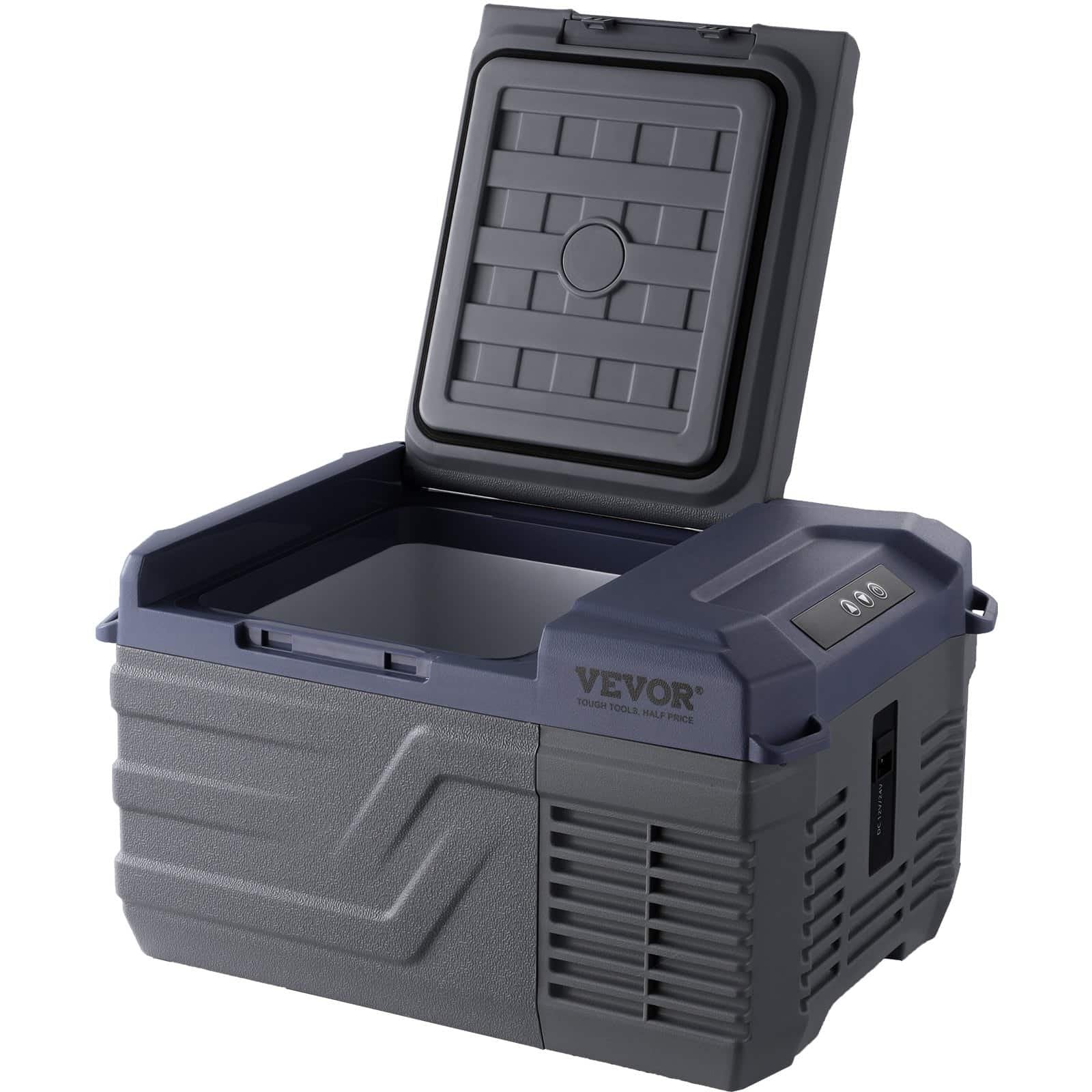 9 litrų talpos automobilinis šaldytuvas su patobulintu kompresoriumi greitam aušinimui per 1 valandą, galintis laikyti tiek aukštą, tiek žemą temperatūrą.