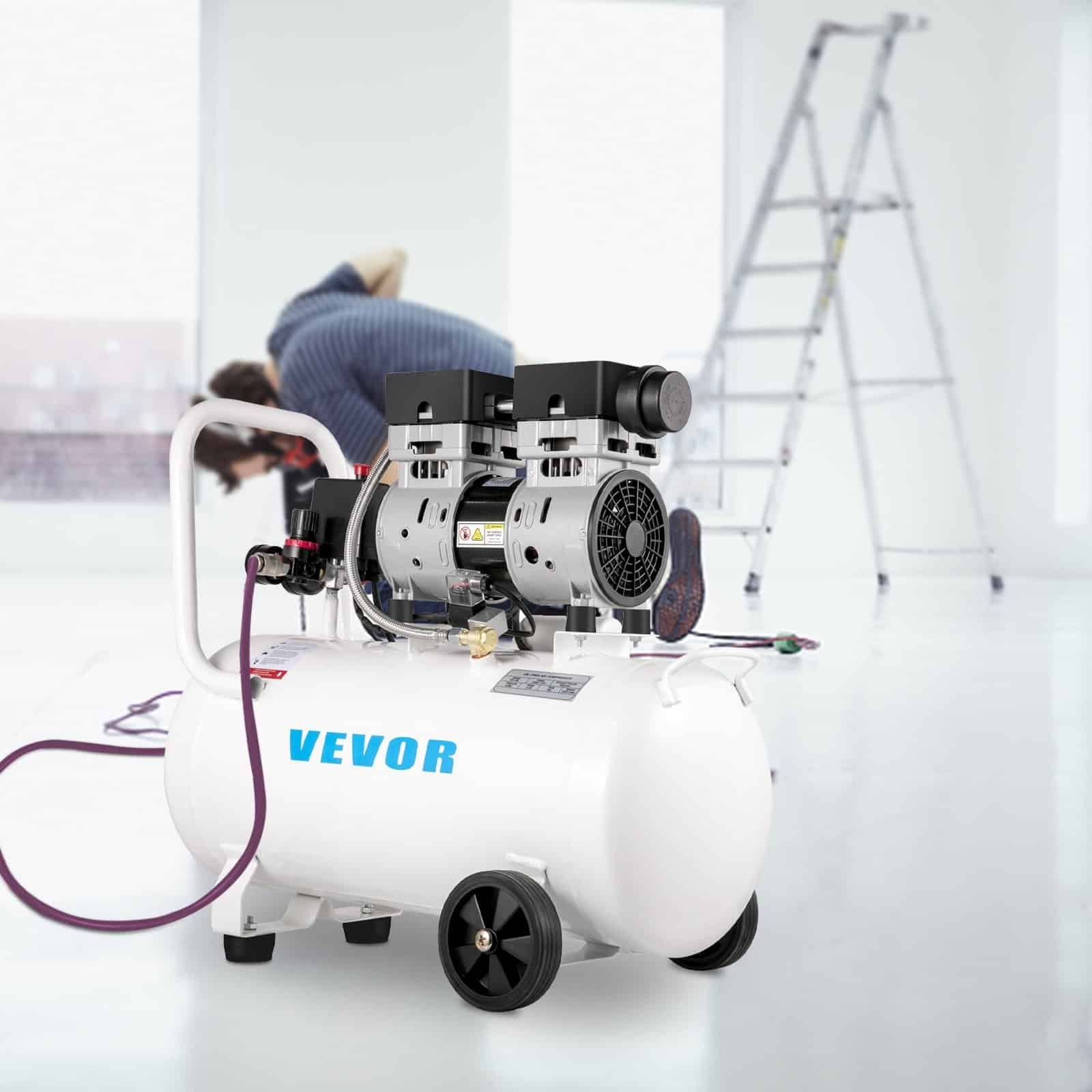 Šis oro kompresorius gali būti naudojamas įvairiems pneumatiniams įrankiams, tokiems kaip grąžtai, vinių pistoletai, sandarinimo pistoletai, pneumatiniai veržliarakčiai ir kt. Jame sumontuotas be alyvos siurblys minimaliai priežiūrai ir 50 litrų bakas nuolatiniam darbui. Be to, kompresorius turi gryno vario variklį, aukštą efektyvumą ir labai tylų darbą, kuris jums tarnaus ilgai.
