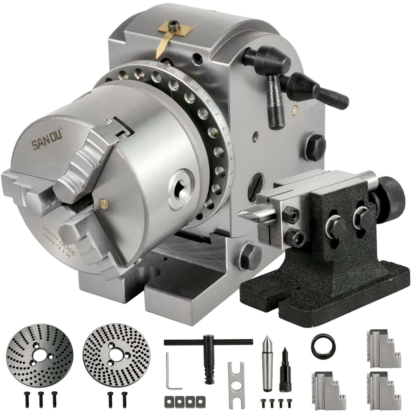 Šis profesionalus dalijimo aparatas su 4 colių (apie 100 mm) trijų žandų spaustuvu – tai nepakeičiamas įrankis tiksliam metalo apdirbimui. Puikiai tinka naudoti frezavimo staklėse, kai reikia reguliariai paskirstyti ruošinio padėtį tam tikrais kampais ar atlikti precizišką gręžimą ir pjovimą. Jo tvirta konstrukcija ir reguliuojami komponentai užtikrina puikų balansą tarp patvarumo ir darbo tikslumo.