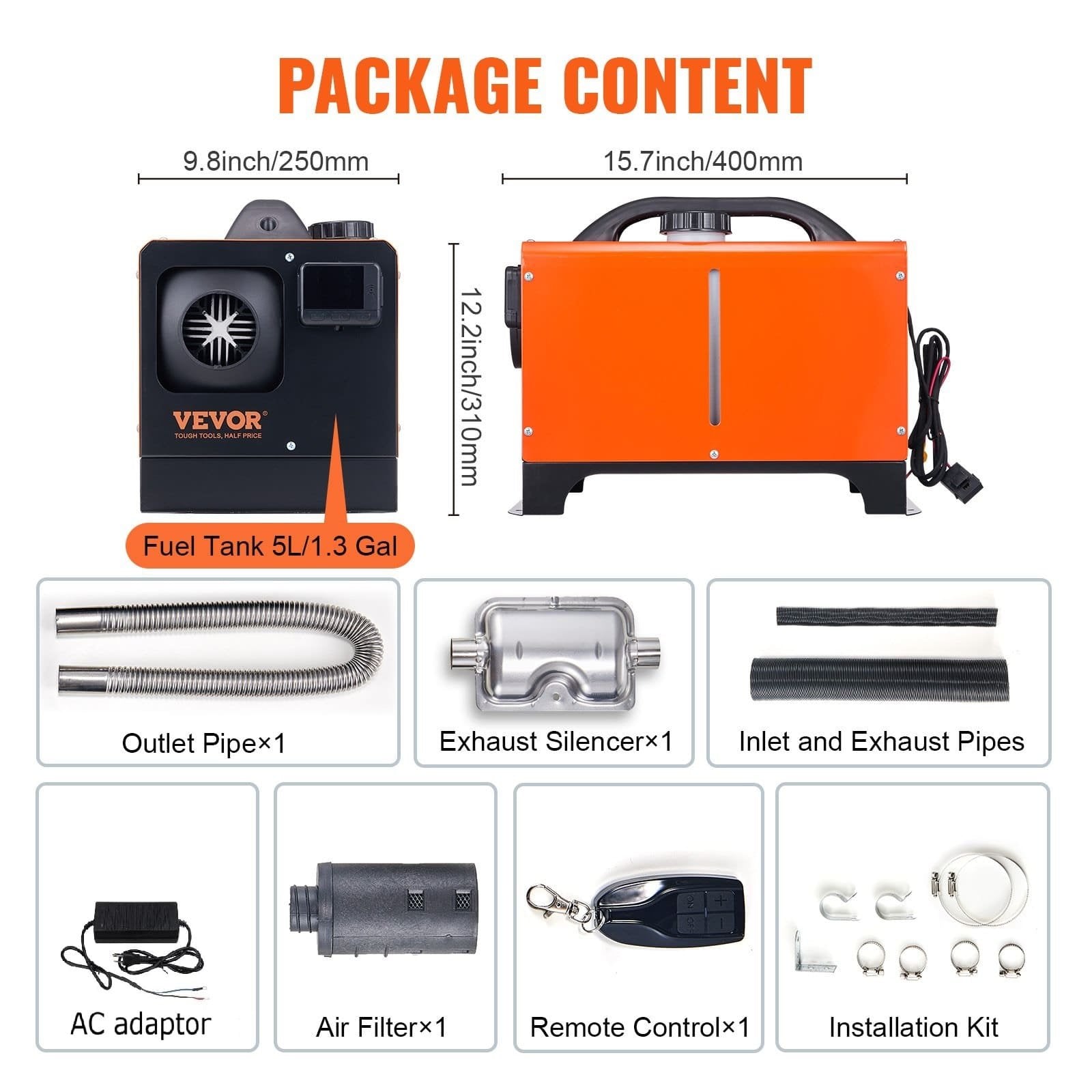 Daugiau niekada nepatirkite vairavimo nepatogumų esant minusinei temperatūrai. Dyzelinis šildytuvas VEVOR yra puikus sprendimas jūsų automobiliui, kemperiui, sunkvežimiui, interjerui ir kt. Jis greitai užtikrina nuolatinį šilto oro srautą, pašalindamas šaltą atmosferą transporto priemonėje ir užtikrindamas patogų važiavimą.