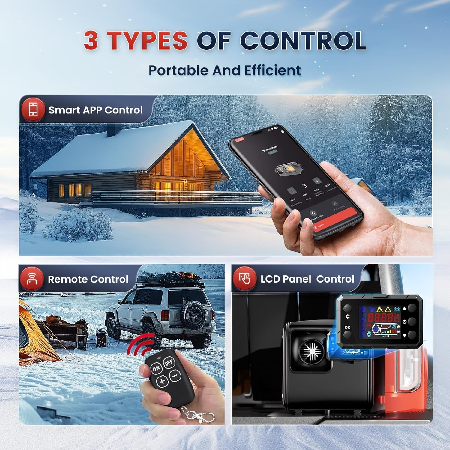 SAUGUMO MECHANIZMAIAtnaujinta pagrindinė plokštė užtikrina aukštą saugumą su apsauga nuo trumpųjų jungimų, neteisingų jungčių, perkrovų, perkaitimo (≥270 °C) ir kitų veiksnių. Šis šildytuvas tinka 12/24 V DC ir 220–240 V AC maitinimo šaltiniams (adapteris įtrauktas į komplektaciją). Tai padaro šildytuvą idealiu pasirinkimu kempingams, traktoriams, namams, sunkvežimiams ar furgonams.