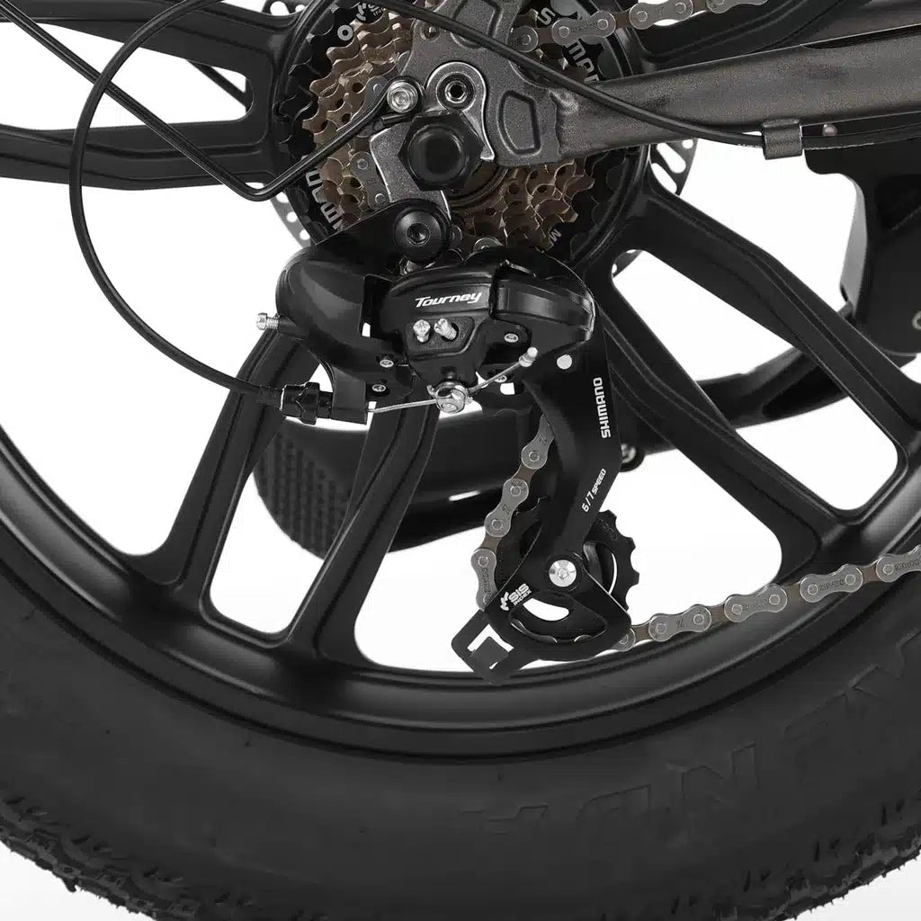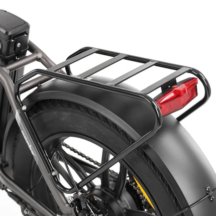 Ratai ir padangos: tvirti 20x4.0” KENDA ratai suteikia stabilumo ir komforto tiek važiuojant miesto gatvėmis, tiek lengvu bekelės reljefu.