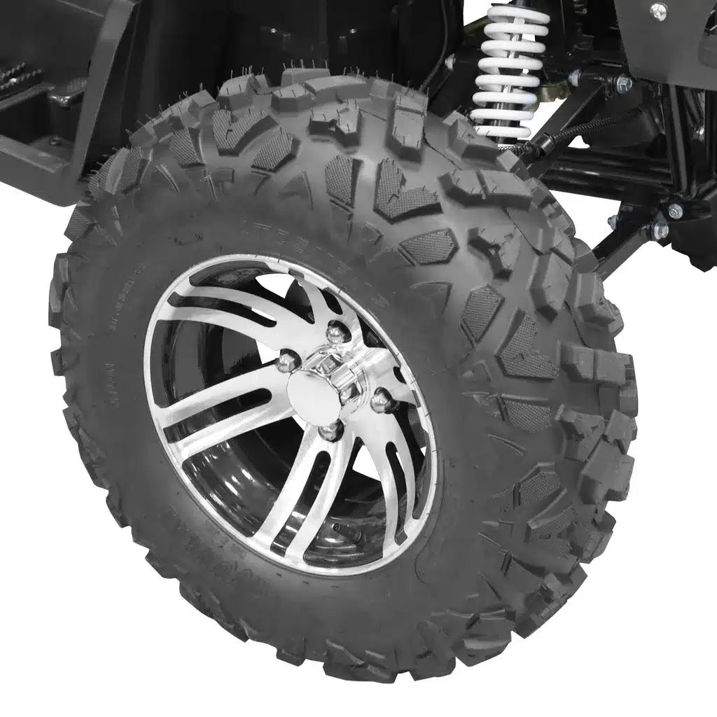 Keturratis aprūpintas diskiniais stabdžiais tiek priekyje, tiek gale, užtikrinančiais saugų ir efektyvų stabdymą net sudėtingomis sąlygomis. Padangos (priekyje 25x8-12", gale 25x10-12") suteikia puikų stabilumą ir sukibimą įvairiuose paviršiuose.