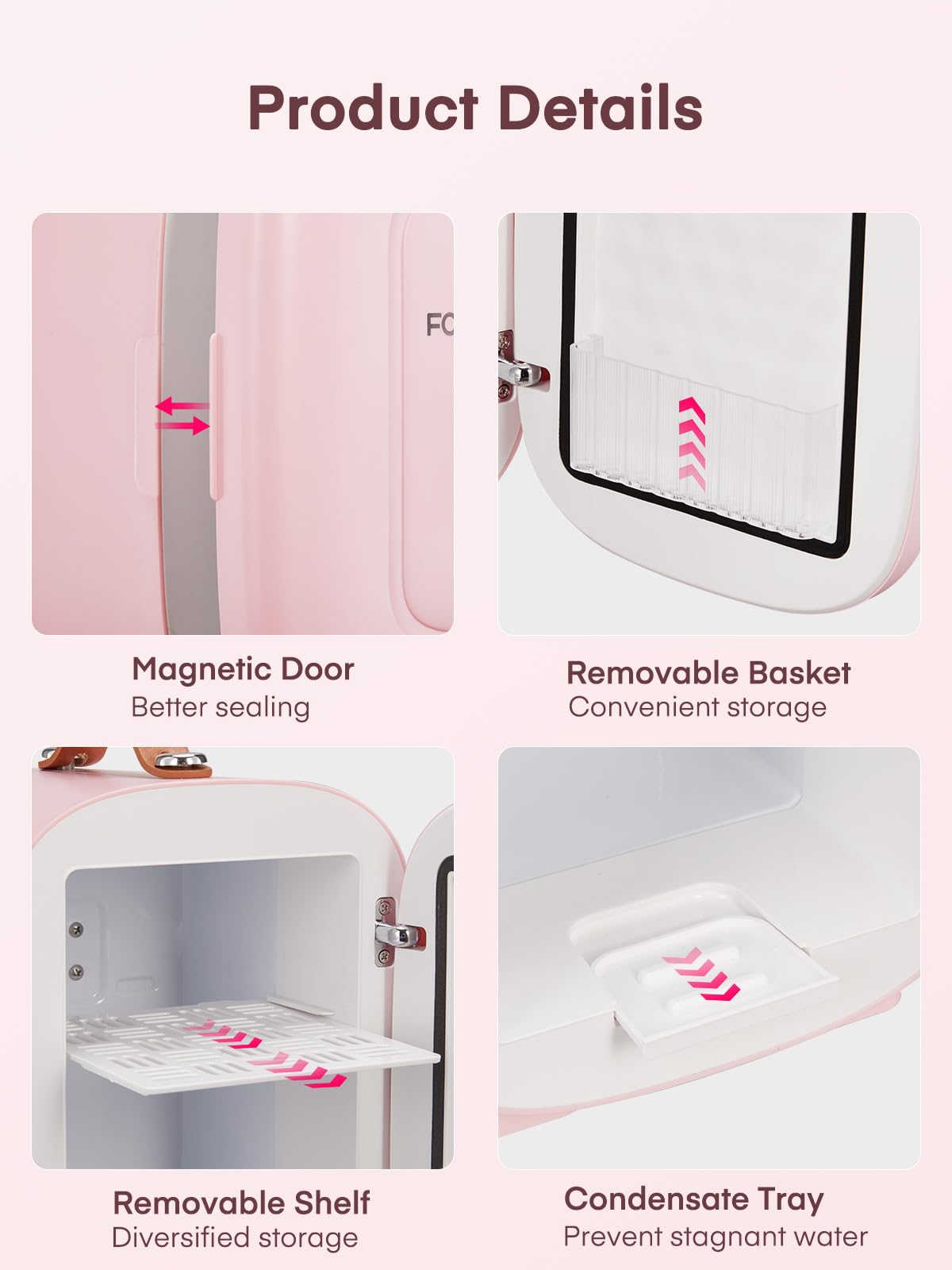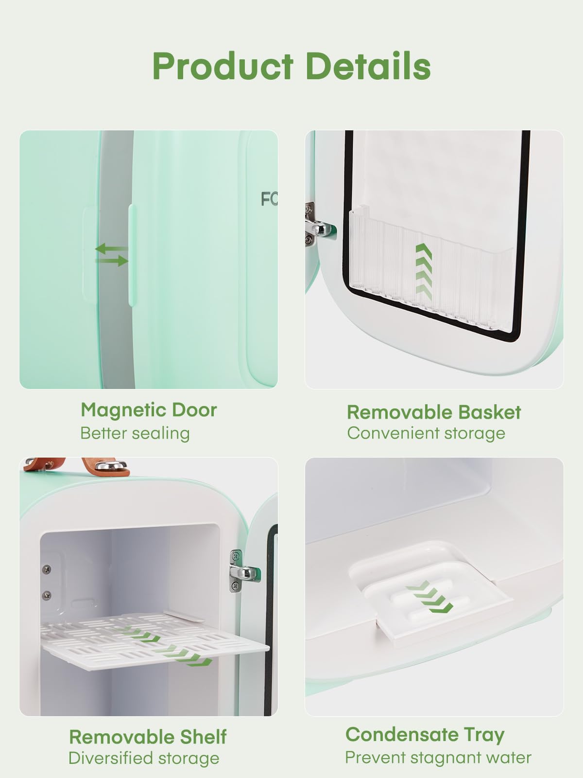 Šis kompaktiškas šaldytuvas turi 5 litrų talpą – jame galite laikyti iki 6 skardinių savo mėgstamų gėrimų! Taip pat jį galima naudoti motinos pienui, kosmetikai ir odos priežiūros priemonėms laikyti. Išimamos lentynos leidžia patogiai atskirti daiktus ir efektyviai išnaudoti vietą.
