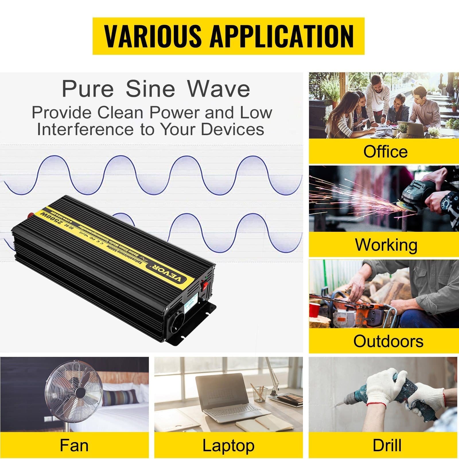 Privalumas: Šis grynos sinusinės bangos keitiklis labai rekomenduojamas jautriems elektroniniams įrenginiams, kuriems reikalinga švari kintamoji srovė, tam kad jie veiktų efektyviai. Jis gali konvertuoti DC 12V į AC 230V. Todėl galite jį naudoti norėdami maitinti kelis vartotojus. Idealiai tinka nešiojamiesiems kompiuteriams, elektros varikliams, šaldikliams, ventiliatoriams, LCD ekranams, šaldytuvams, oro kompresoriams, mikrobangų krosnelėms, kavos aparatams, televizoriams, CD/DVD grotuvams ir kt.