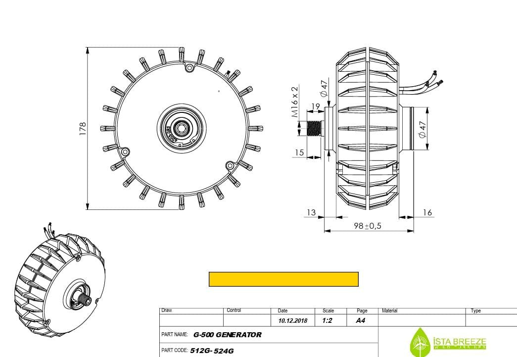 Istabreeze G-500 24V nuolatinio magneto generatorius
