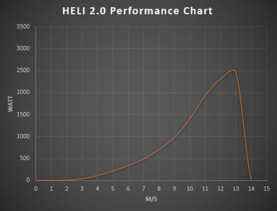 IstaBreeze Heli 2.0 On-Grid veikia žemo greičio diapazone – nuo 150 iki 600 aps./min, o bendras apsukų spektras siekia iki 800 aps./min. Tai leidžia efektyviai gaminti energiją net ir esant nepalankioms vėjo sąlygoms.