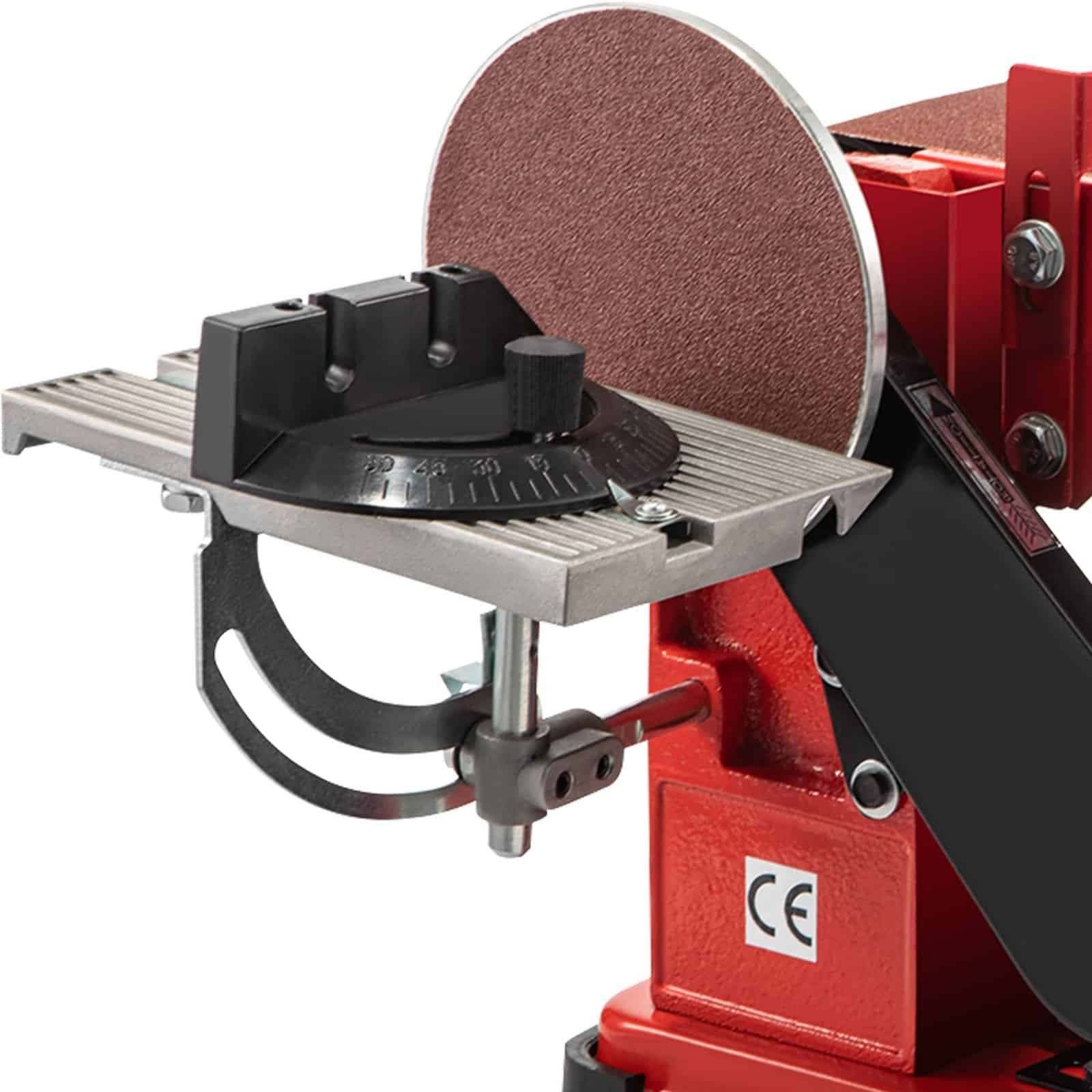 Reguliuojamas kampo stalas: Diskų stalas gali būti reguliuojamas iki 45° kampo, kas suteikia galimybę atlikti įvairių tipų pjūvius ir šlifavimą įvairiais kampais.