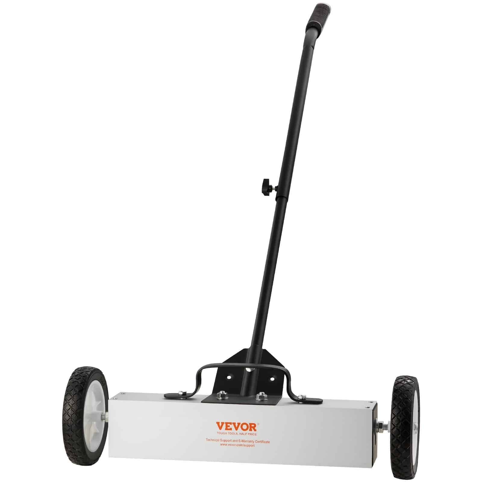 Galingas magnetas: VEVOR magnetinė ratinė šluota gali pritraukti iki 20,4 kg metalinių šiukšlių. Šluotos plotis yra 45 cm. Puikiai surenka vinis, varžtus, metalo likučius ir apsaugo nuo šukių bei aštrių objektų.
