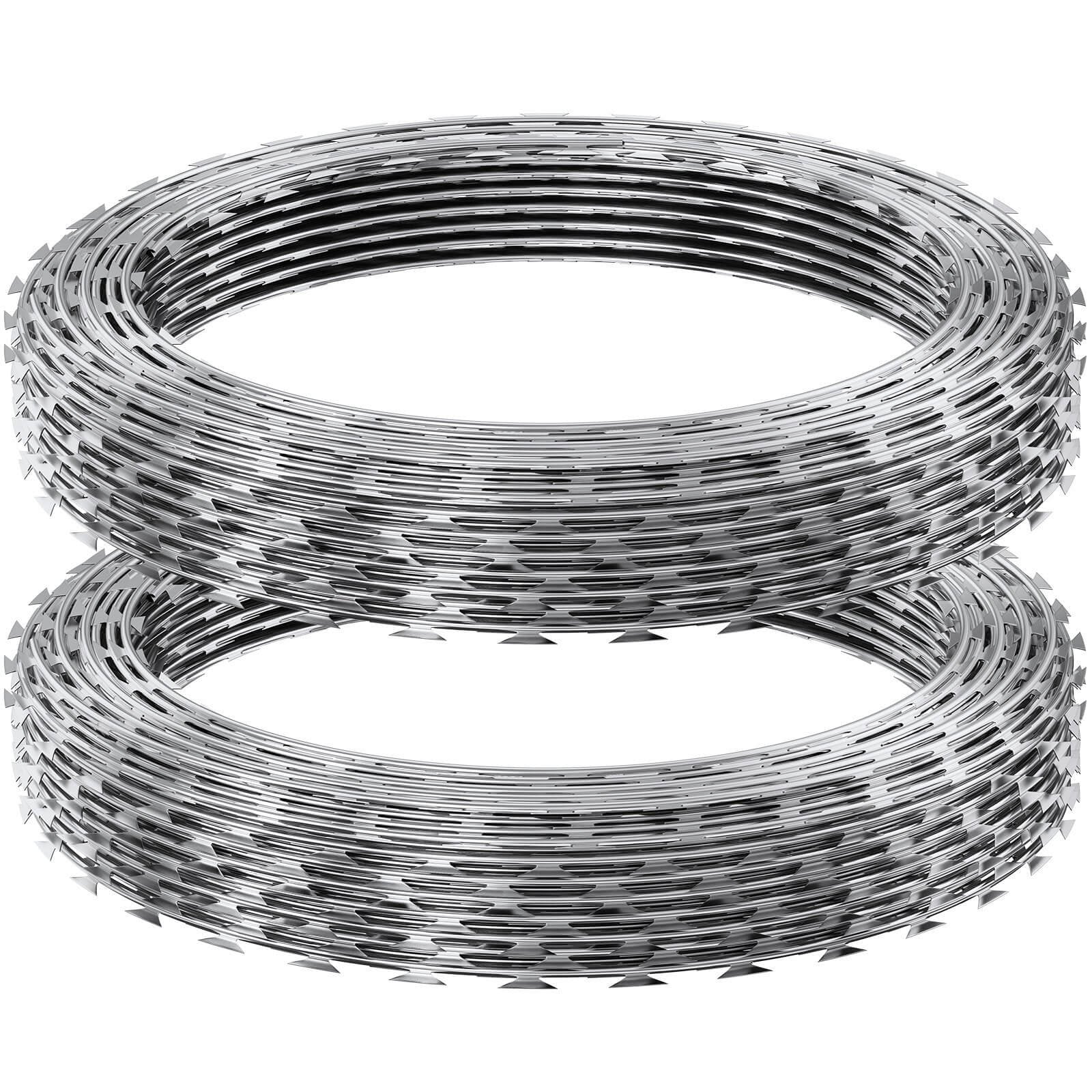 30 m apimtis:Mūsų spygliuotos vielos su skustuvo ašmenimis pateikiamos 2 ritėse ir suteikia bendrą apimtį iki 30 m. Kiekviena ritė turi 48 cm skersmenį ir apie 31 kilpą. Ji lengvai atitinka jūsų saugumo reikalavimus. Prieš montuojant, patikrinkite vietinius teisės aktus ir gaukite reikalingus leidimus.