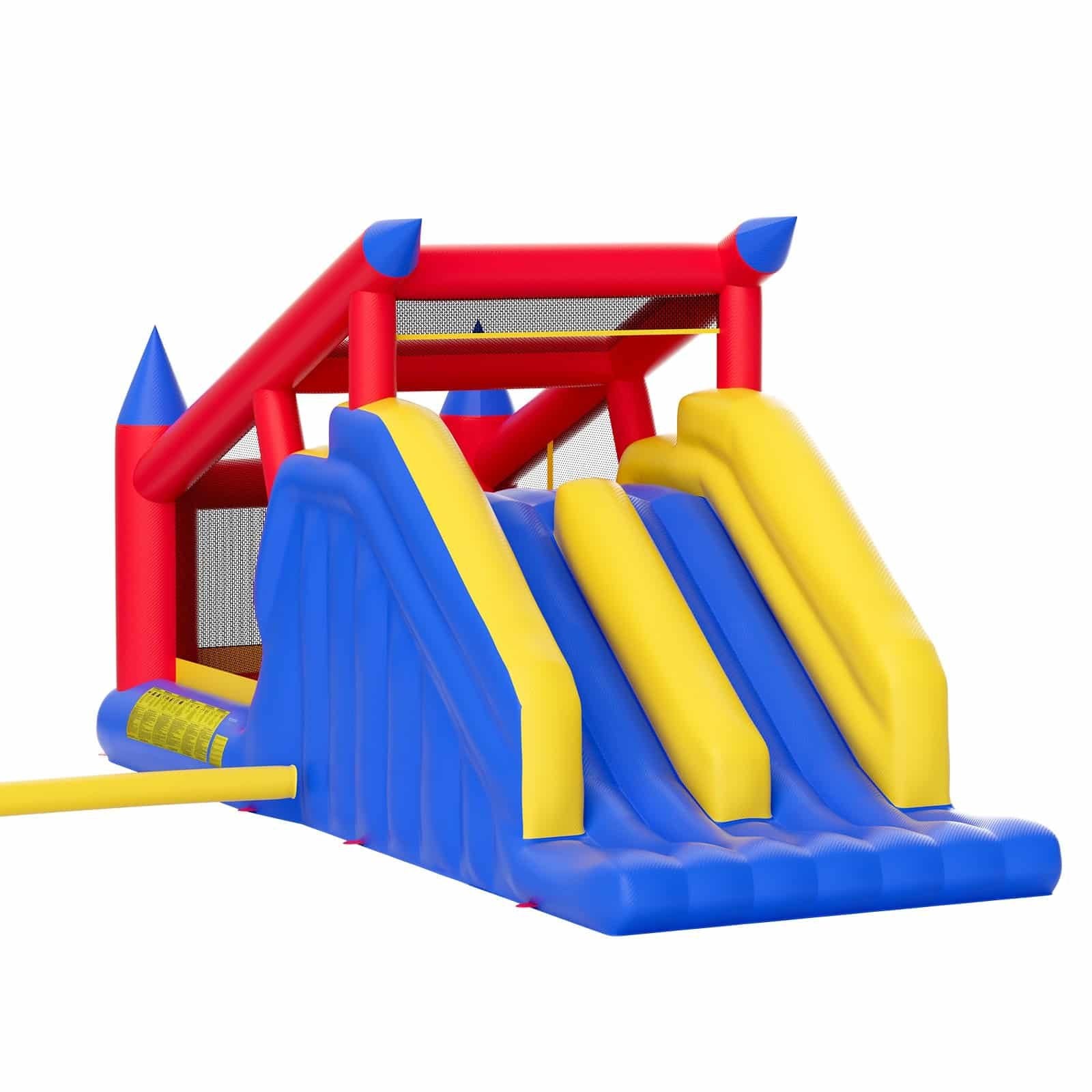 Batutų pilis pasižymi ne tik plačia šokinėjimo zona, bet ir dviem lygiagrečiomis čiuožyklomis, leidžiančiomis vaikams čiuožti vienu metu kaip lenktynių trasoje. Aukšti saugumo turėklai ir papildomas tinklas užtikrina maksimalų saugumą. Ši pramoga suteiks džiaugsmo visai šeimai, o vaikai galės mėgautis nepertraukiamu ir saugiu žaidimu.
