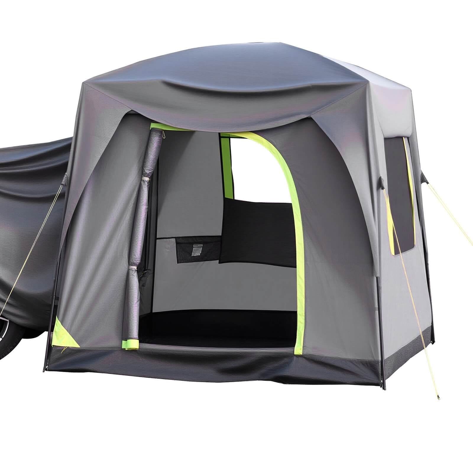 Ši daugiafunkcinė SUV palapinė gali būti naudojama kaip praplėtimas prie jūsų automobilio galinės dalies arba kaip atskirai stovinti palapinė. Ji tinka vidutinio dydžio ir mažesniems SUV, jei bagažinės durelės atsidaro į viršų ir galinės dalies perimetras neviršija 6,1 metro. Tai idealus pasirinkimas, norint sukurti papildomą stovyklavimo erdvę ir padidinti kelionių komfortą.