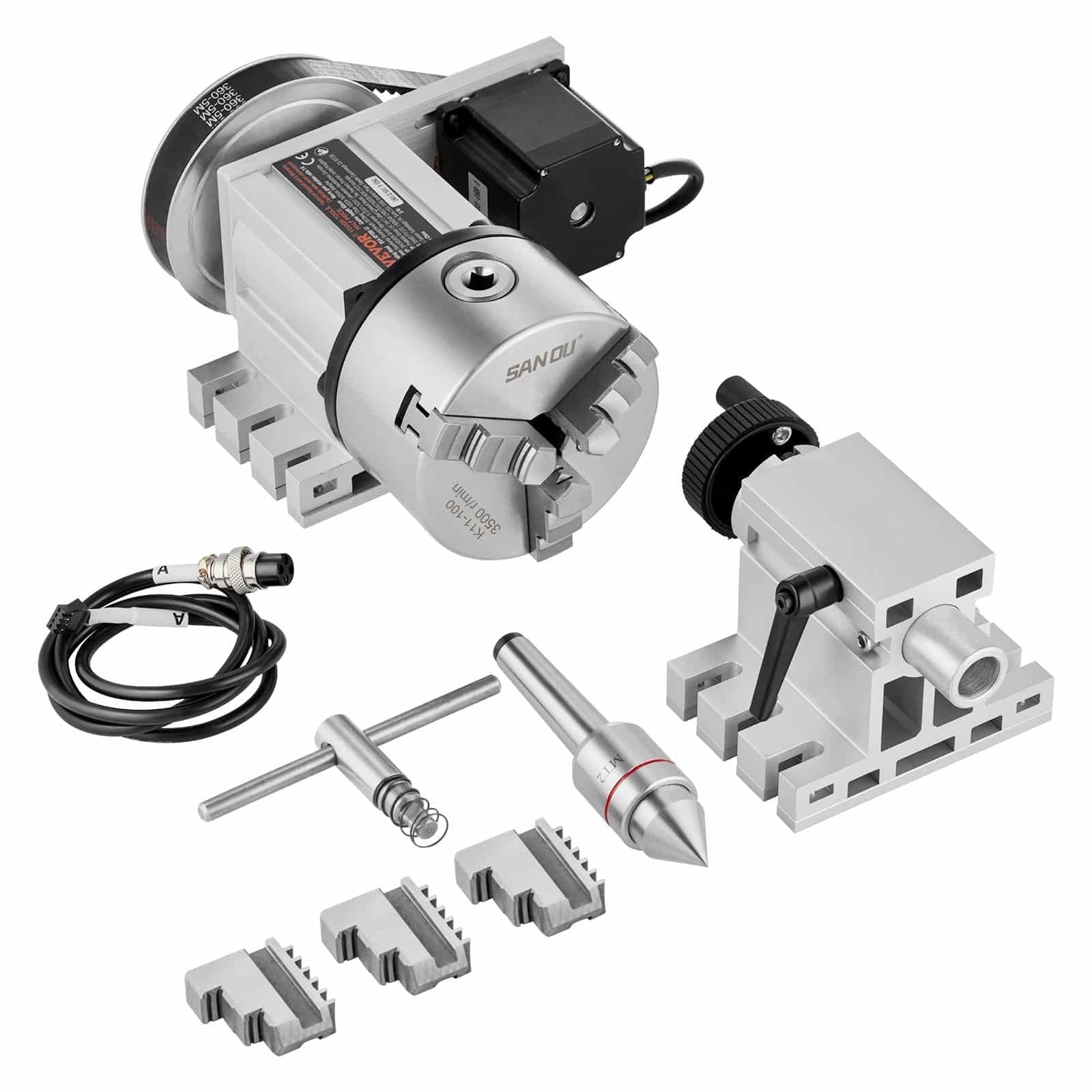 Paverskite savo CNC stakles tikru tikslaus apdirbimo centru su šiuo 4-osios ašies pasukamuoju įtaisu. Dėl galimybės sukti ruošinius iš įvairių kampų ir pozicijų, galėsite lengvai apdoroti sudėtingas detales su kreivėmis ar kampuotais elementais. Įrenginys aprūpintas K11 tipo 100 mm 3 žandikaulių griebtuvu, turinčiu 22 mm (0,9 colio) perėjimo skylę ir 65 mm (2,6 colio) centro aukštį – tai leidžia tiksliai atlikti įvairaus sudėtingumo darbus.